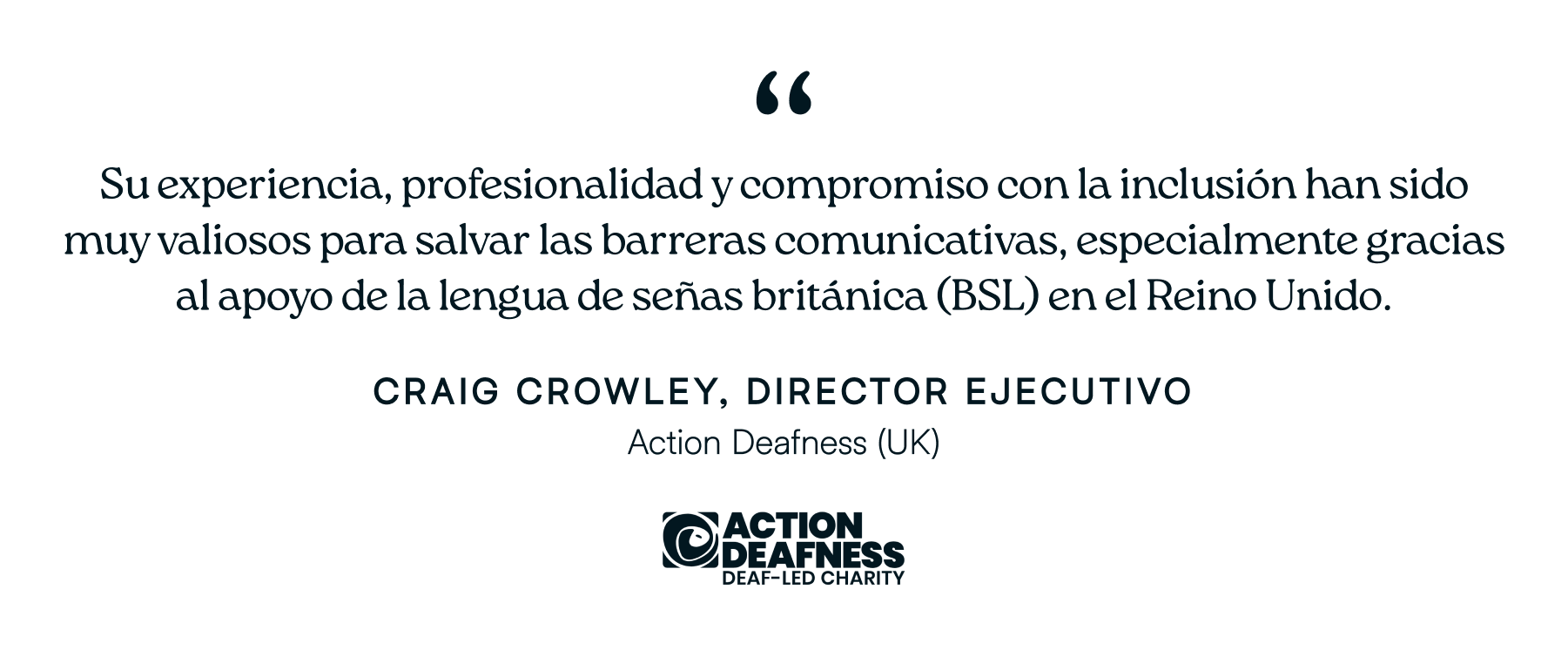 Su experiencia, profesionalismo y compromiso con la inclusión han sido invaluables para superar las brechas de comunicación, especialmente a través del apoyo a la Lengua de Señas Británica (BSL) en el Reino Unido.